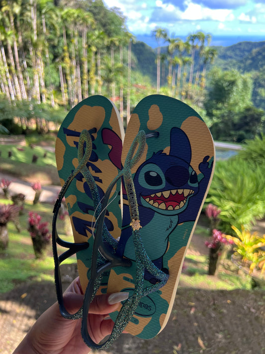 Havaianas Luna Stitch Aloha Glitter Verde + 2 Bijoux