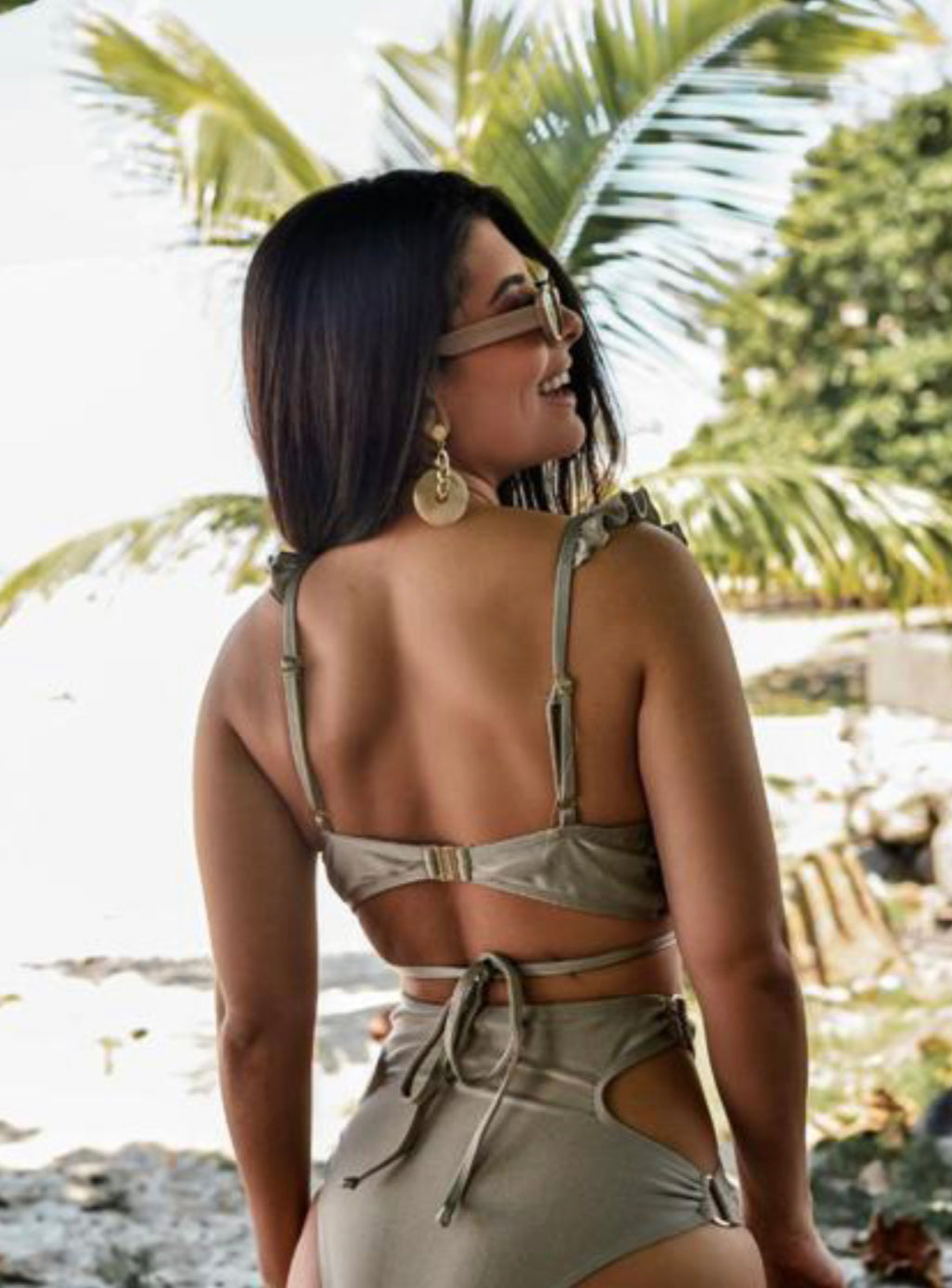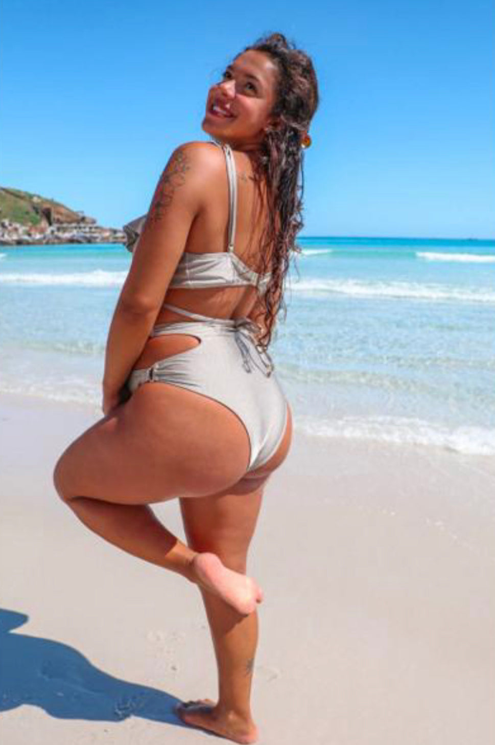 Luna revient dans une version plus audacieuse et résolument tendance avec ce ton argenté subtil et sophistiqué. Le haut à volants encadre joliment le buste, tandis que les fines lanières croisées ajoutent une touche irrésistible à l’ensemble. Le bas taille haute, ponctué de découpes latérales, structure la silhouette avec style tout en laissant subtilement deviner la peau.
