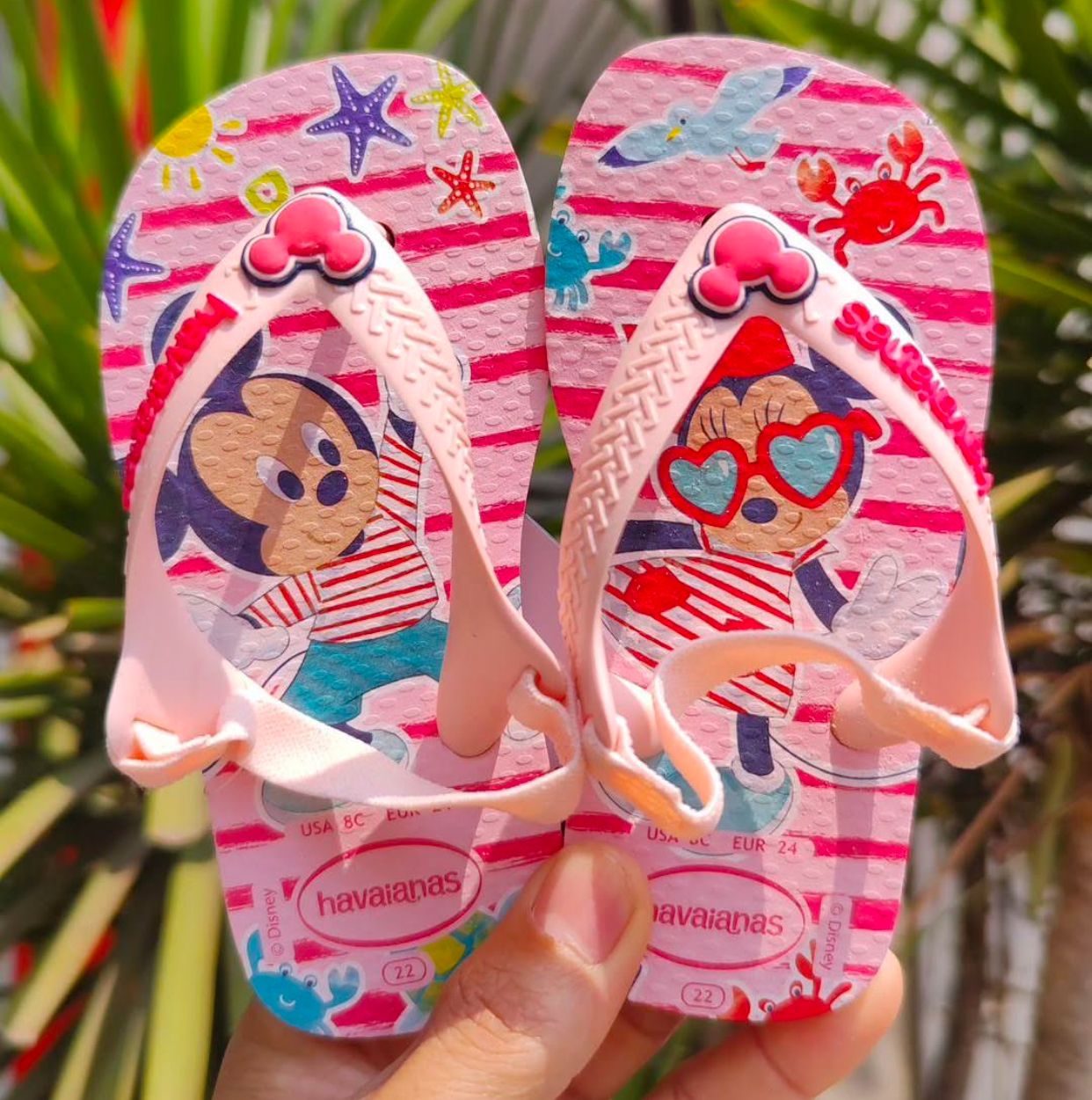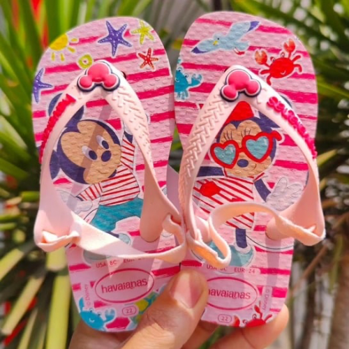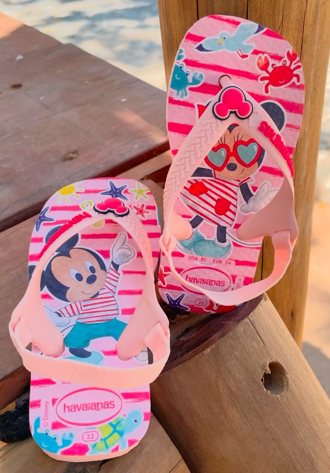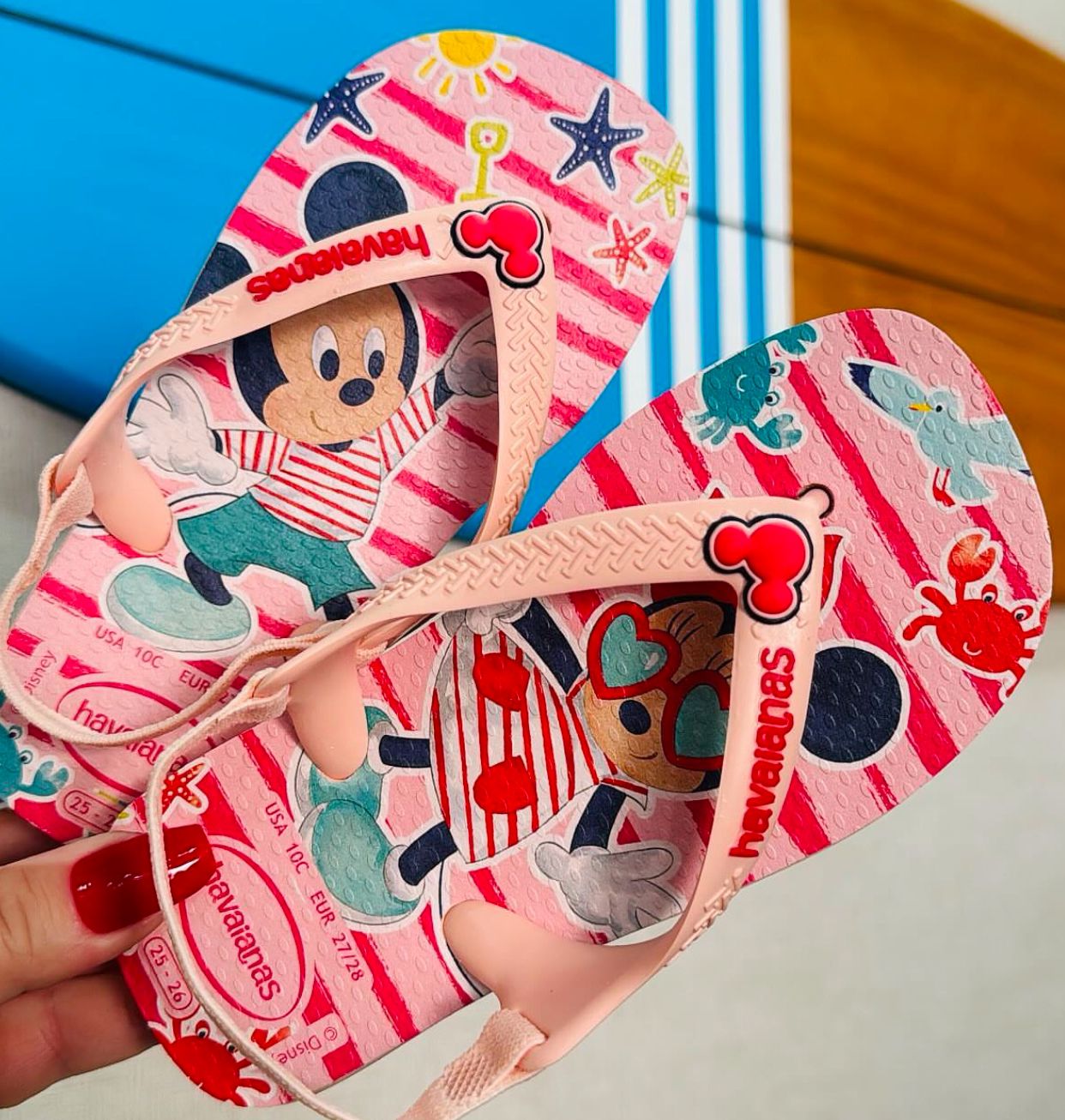 Craquez pour cette adorable paire Havaianas baby à l’effigie de Minnie et Mickey en tenue de plage ! Avec son imprimé marin coloré, ses petits crabes et étoiles de mer, cette sandale est parfaite pour les petits pieds en quête de soleil.