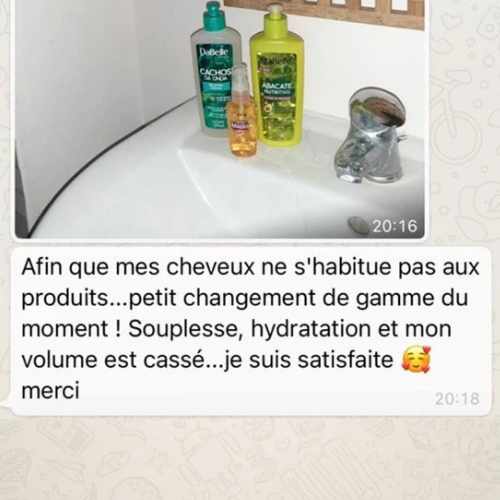 - Pour une coiffure protectrice ou avec cheveux attachés, elle estompes les frisottis, les cheveux gagnent en protection, en élasticité et en résistance, en plus d'être nourris et débarrassé des pointes fourchues.