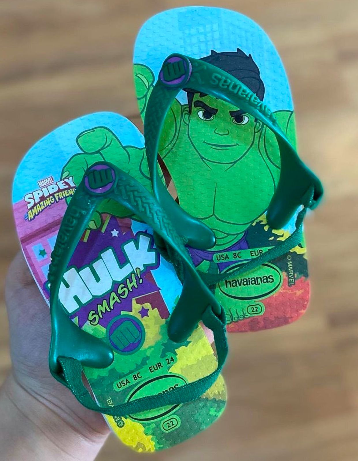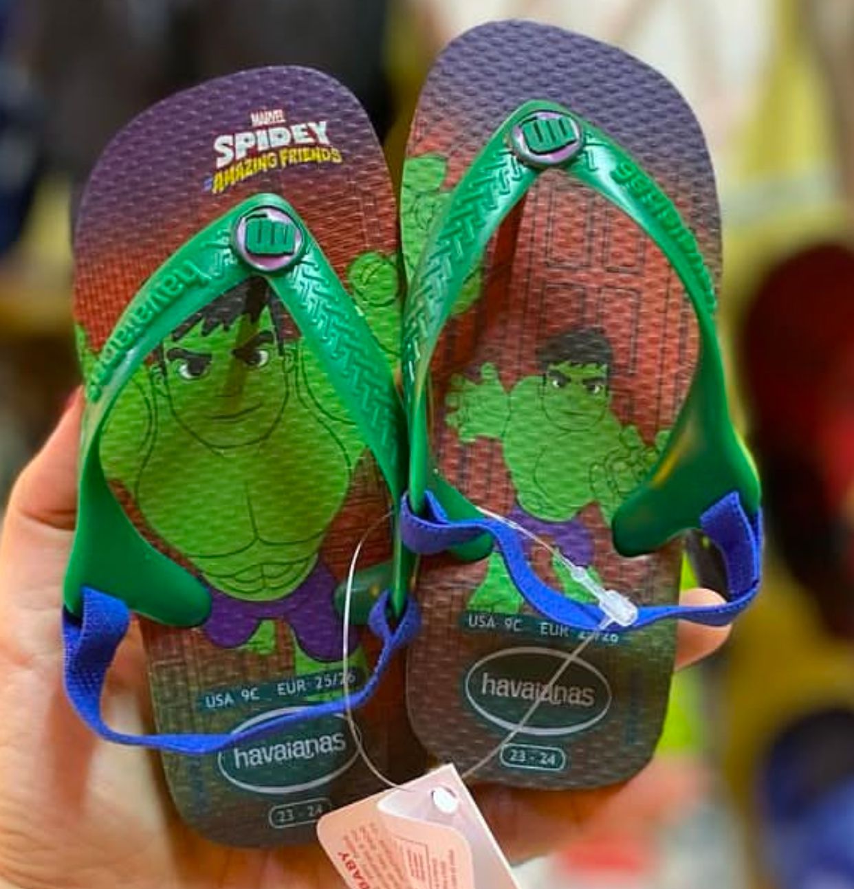 Avec cette paire Havaianas Baby Spidey & Friends, les petits super-héros peuvent marcher dans les pas de Hulk en toute sécurité ! Son imprimé coloré et fun à l’effigie du géant vert séduira les enfants fans de Marvel dès le plus jeune âge.