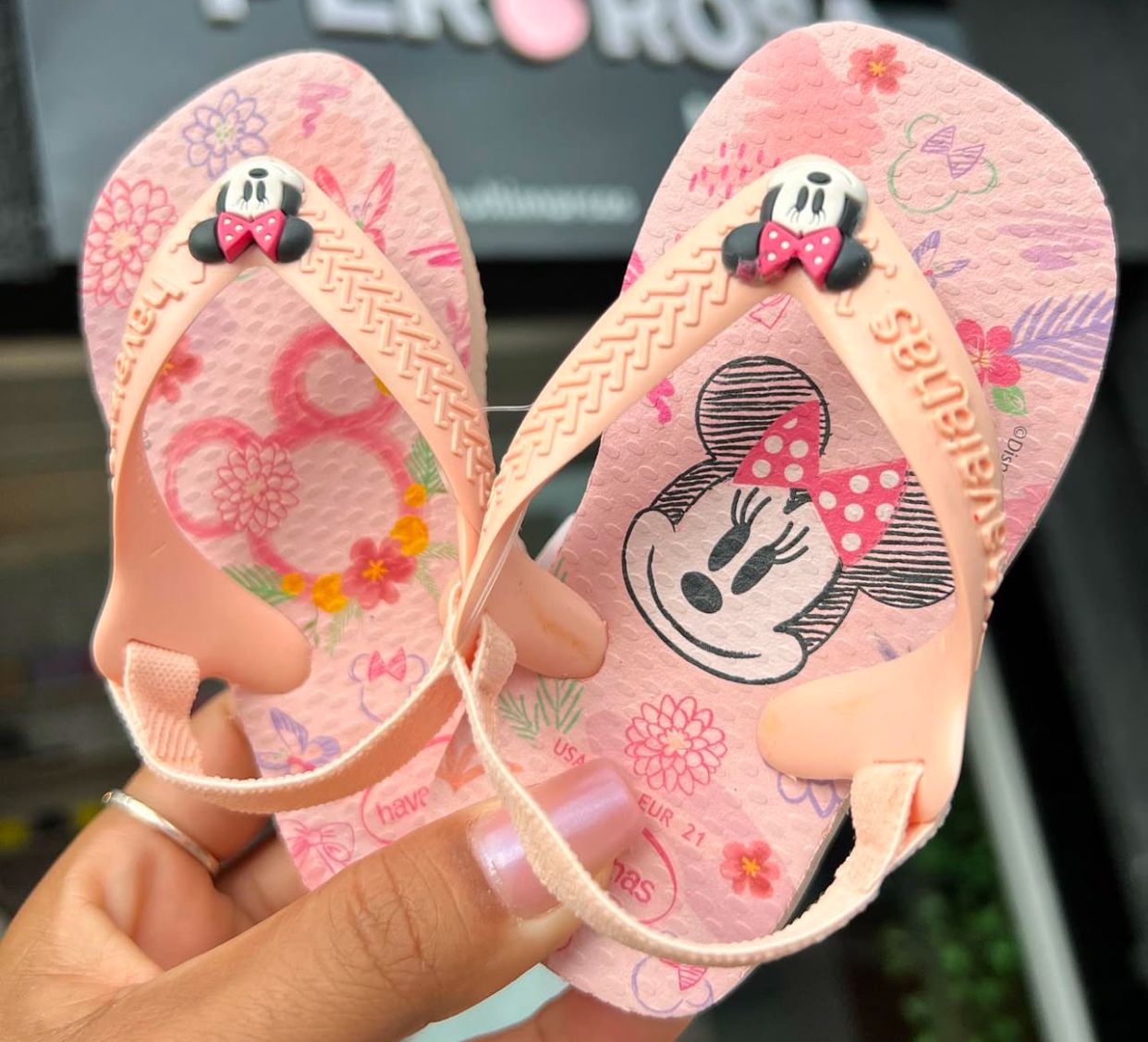 Un vent d’été souffle sur les petits pieds avec cette paire Havaianas baby à l’effigie de Minnie. Un décor florale, des couleurs vitaminées et une bride de maintien pour allier confort et sécurité.