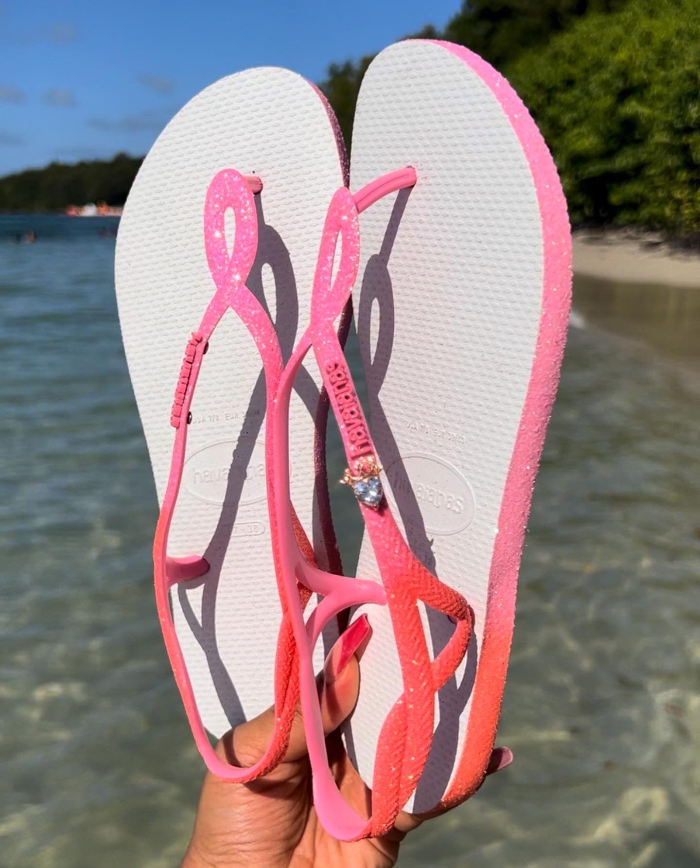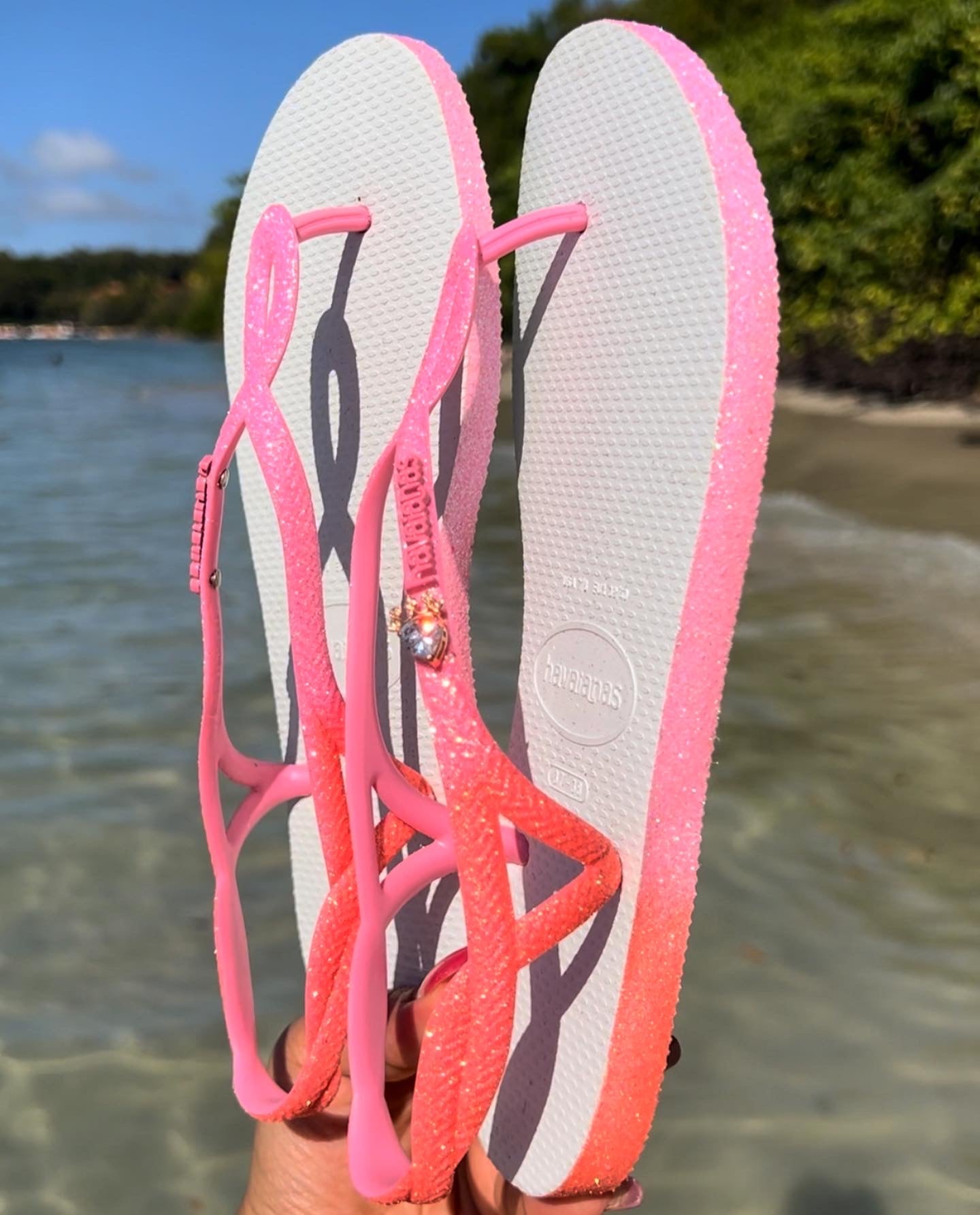 Un dĂ©gradĂ© de rose/orange subtil, des brides pailletĂ©es  : cette paire incarne la fĂ©minitĂ© Ă la brĂ©silienne. Parfaite pour illuminer vos pas toute l’annĂ©eÂ