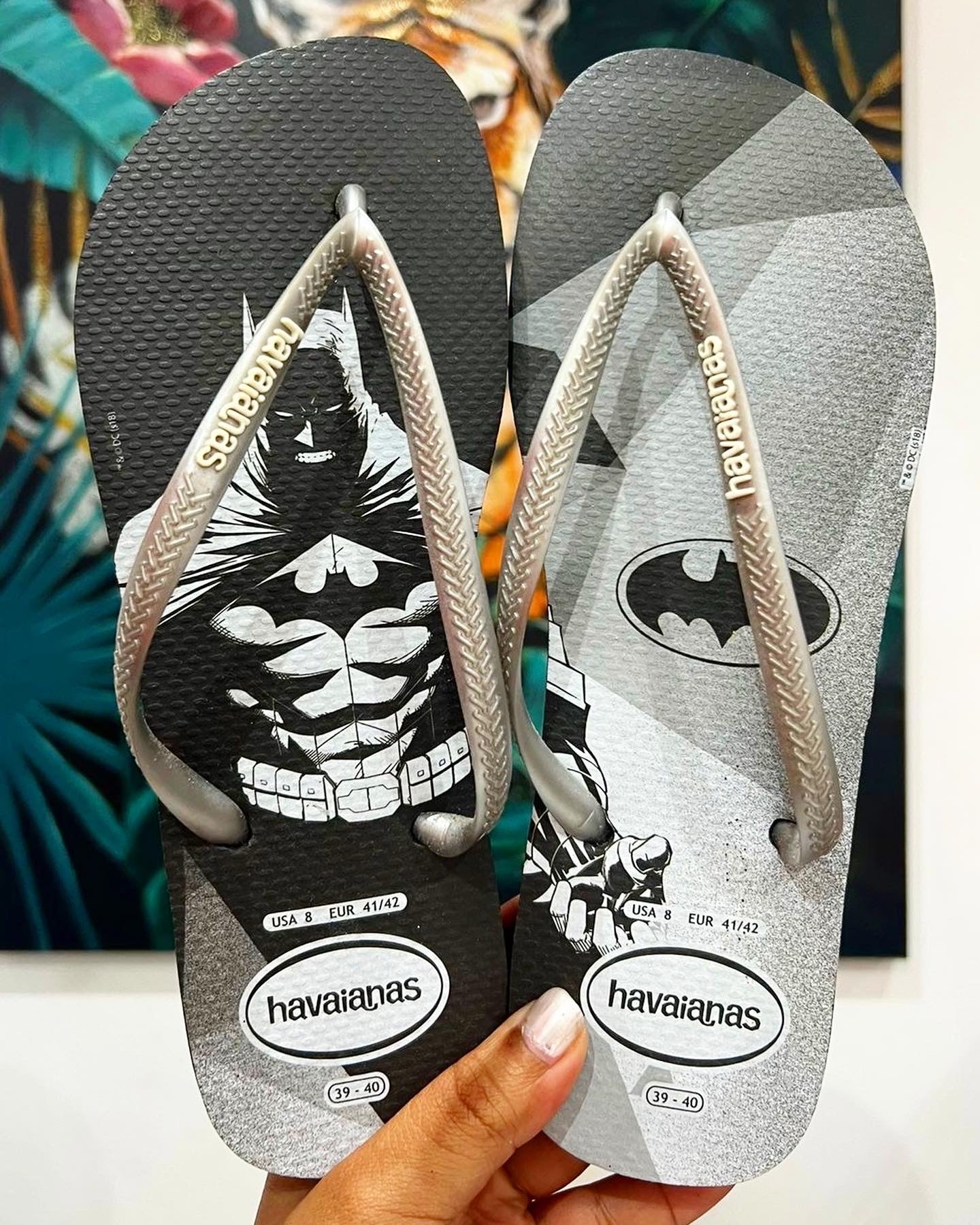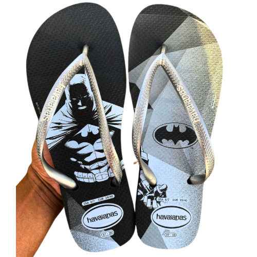 Inspirée par le Chevalier Noir, cette paire Havaianas mêle élégance et audace. Son design en noir et gris met en valeur le justicier de Gotham dans un style graphique affirmé.